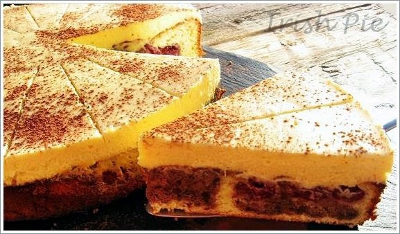 - Lift the baked, and down cooled bottom from the mold and spread the cream over. place in a refrigerator for about 60 minutes, so the cream can set. Then sprinkle the cake with cocoa powder , divided into the desired size pieces and serve.